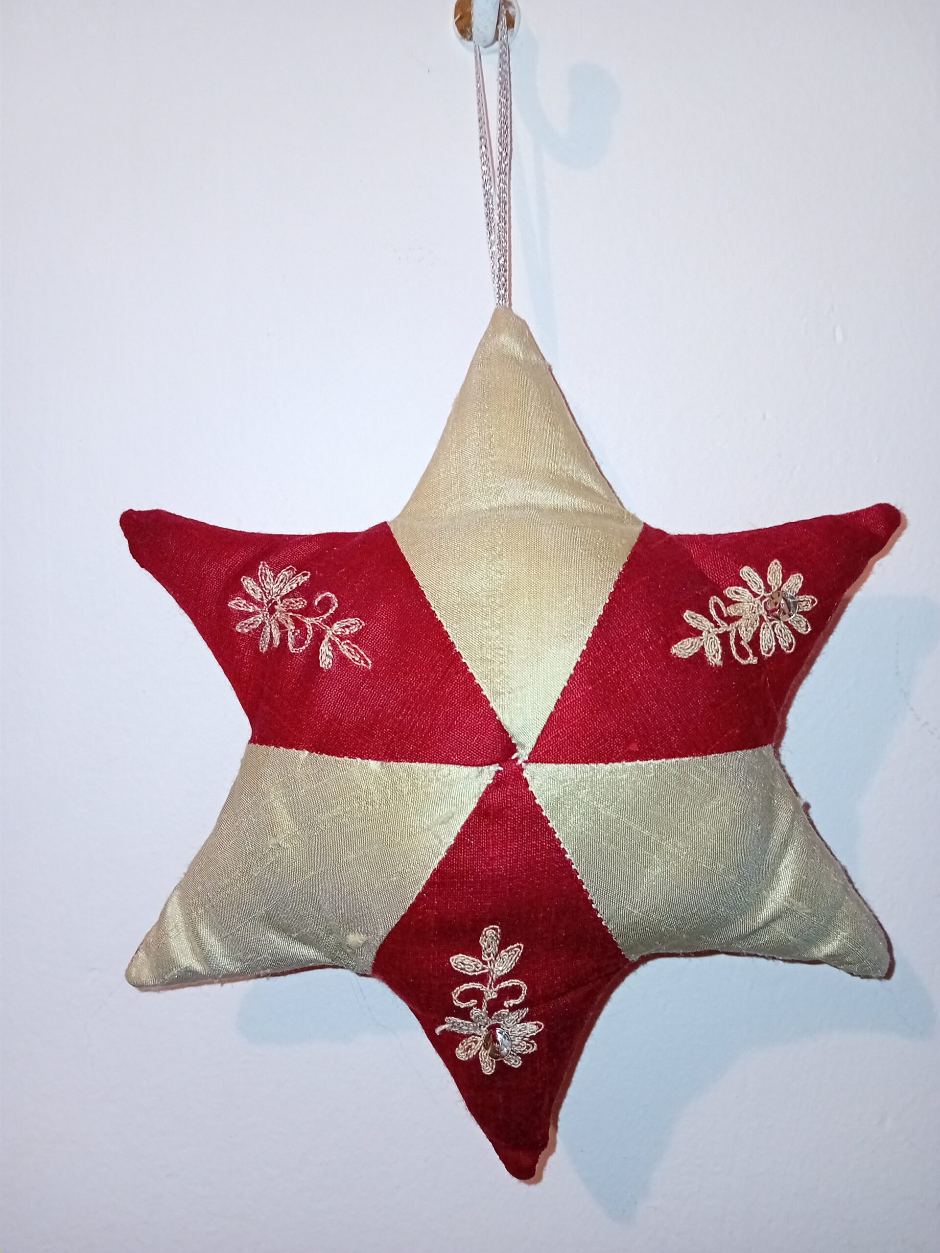 An elegant star where handcrafted blooms glow against a deep red silk, whispering of distant lands and warm, cosy magic.